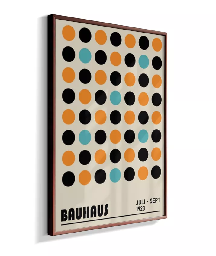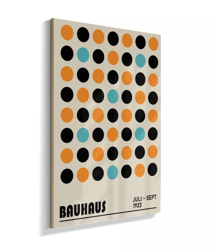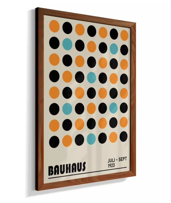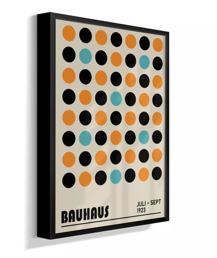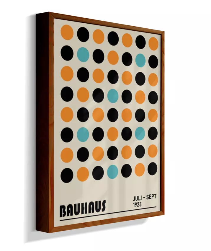 Design minimalista e moderno inspirado no movimento Bauhaus, com formas geométricas marcantes, linhas precisas e cores primárias. Ideal para ambientes contemporâneos, esse quadro une arte e funcionalidade, trazendo equilíbrio visual e sofisticação com um toque retrô. Uma escolha perfeita para quem busca elegância atemporal com identidade criativa.