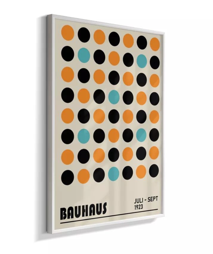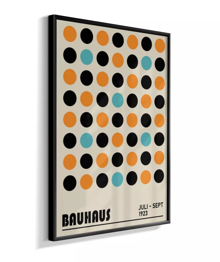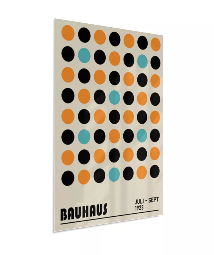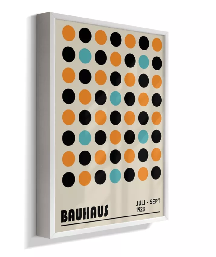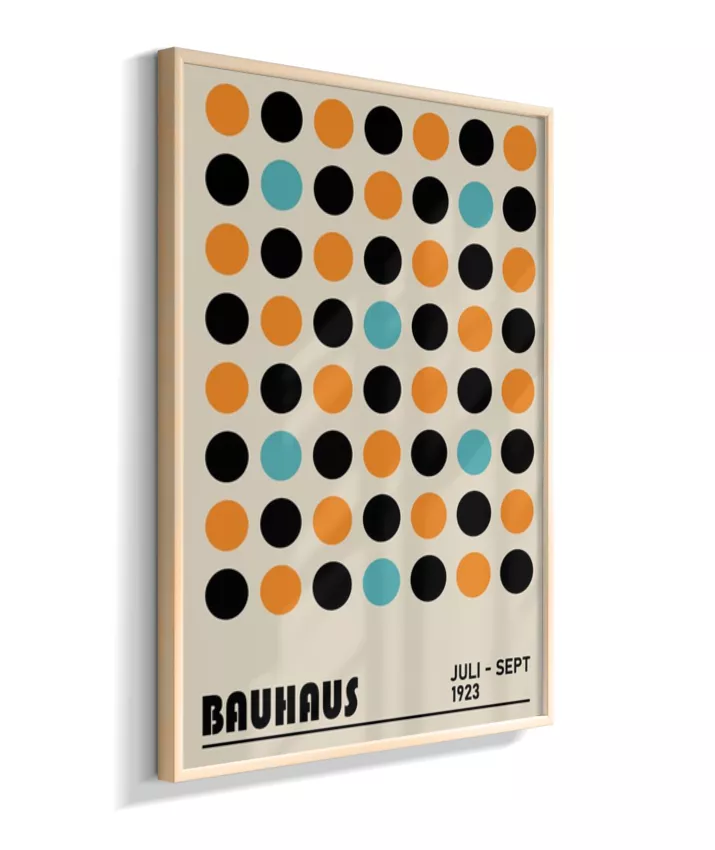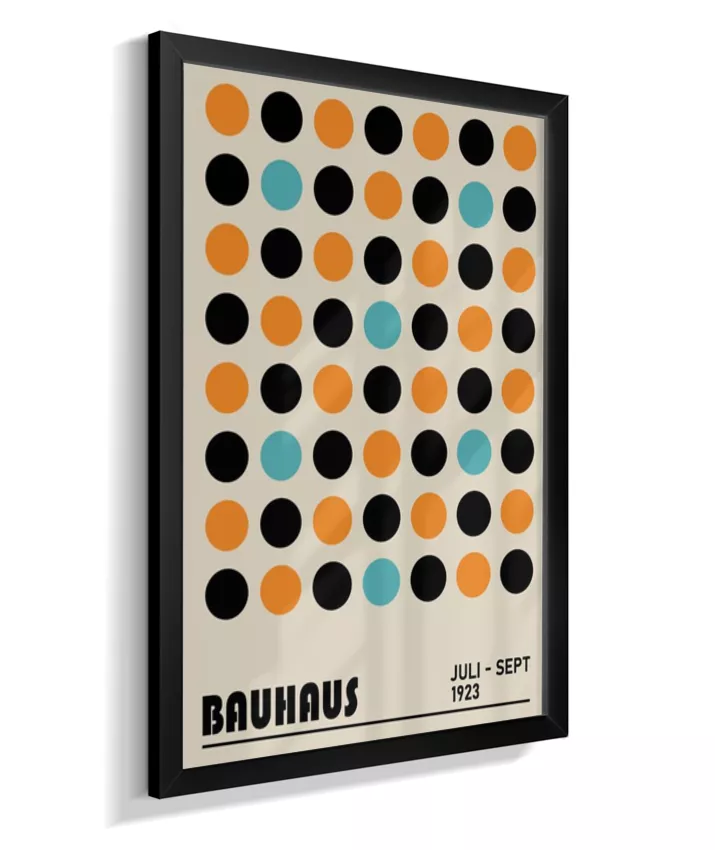 Design minimalista e moderno inspirado no movimento Bauhaus, com formas geométricas marcantes, linhas precisas e cores primárias. Ideal para ambientes contemporâneos, esse quadro une arte e funcionalidade, trazendo equilíbrio visual e sofisticação com um toque retrô. Uma escolha perfeita para quem busca elegância atemporal com identidade criativa.
