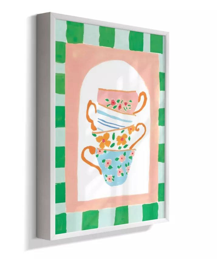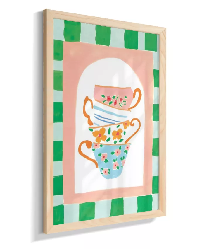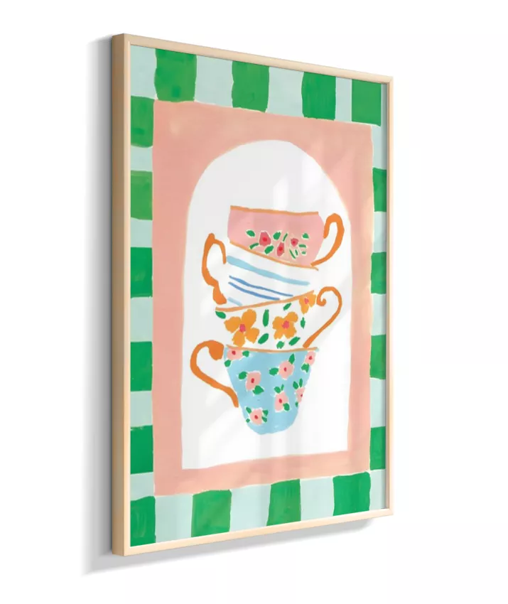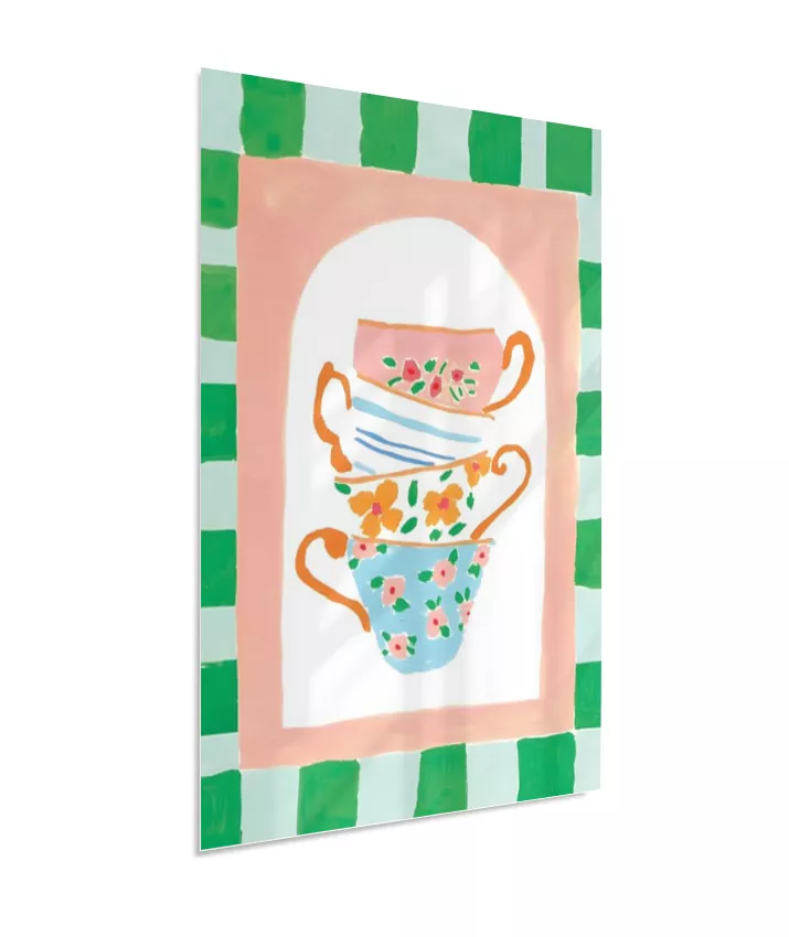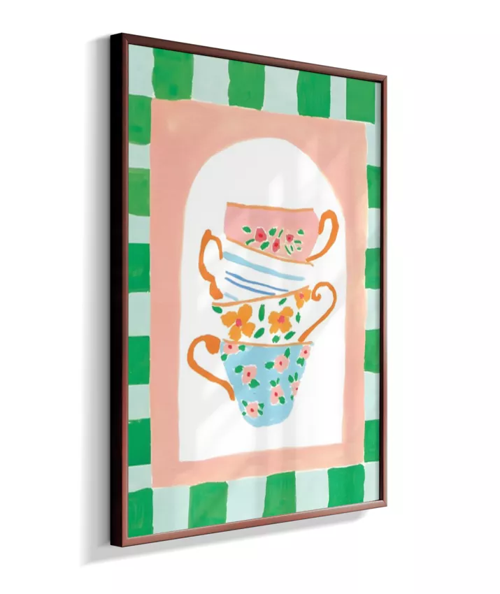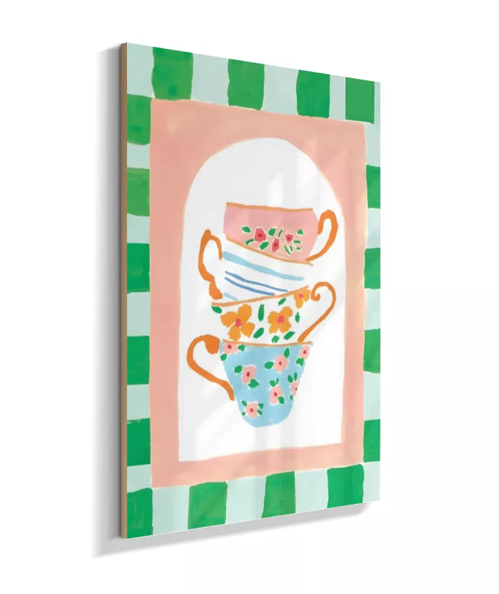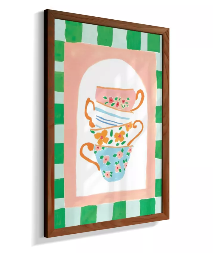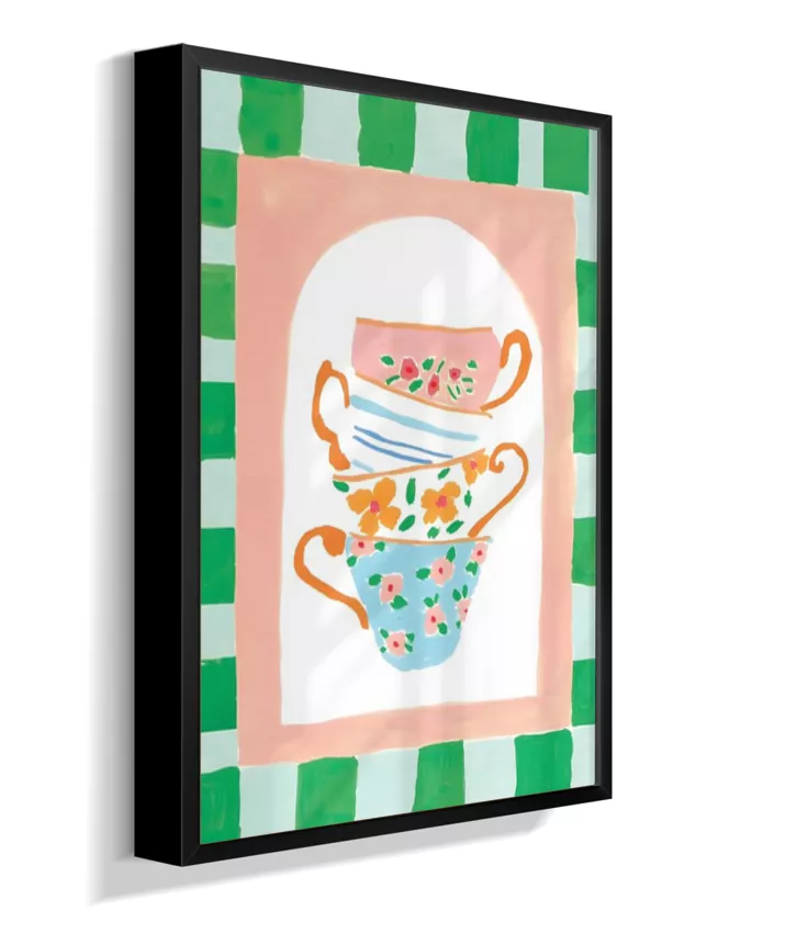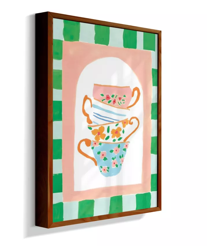 Essa arte carrega o charme do vintage, das flores pintadas com carinho e da sensação de lar. Um toque alegre e nostálgico que transforma cozinhas e cantinhos do café em verdadeiros altares de afeto