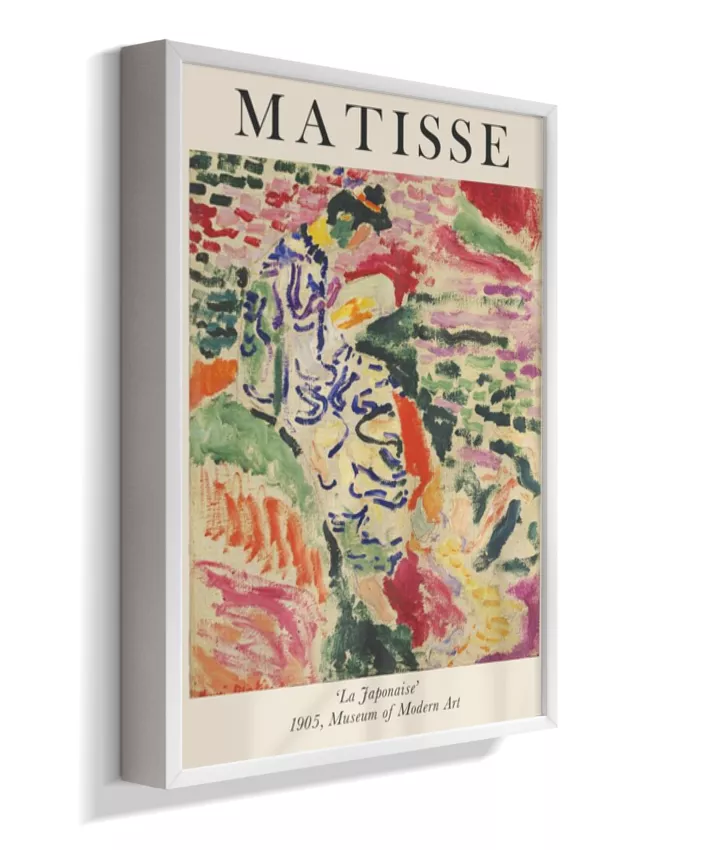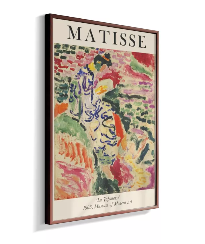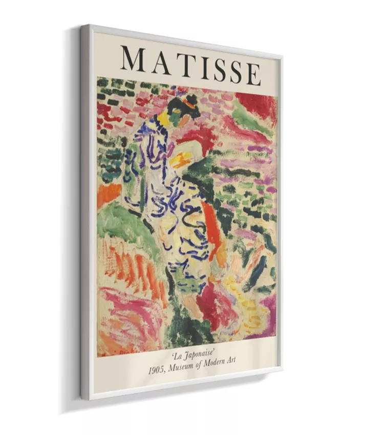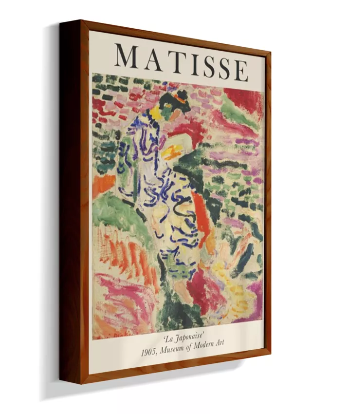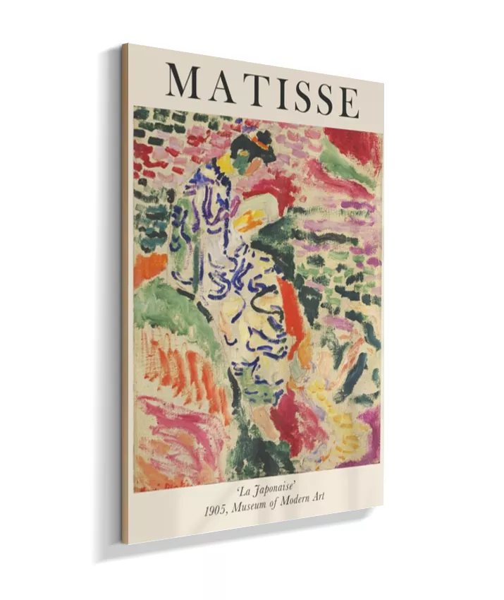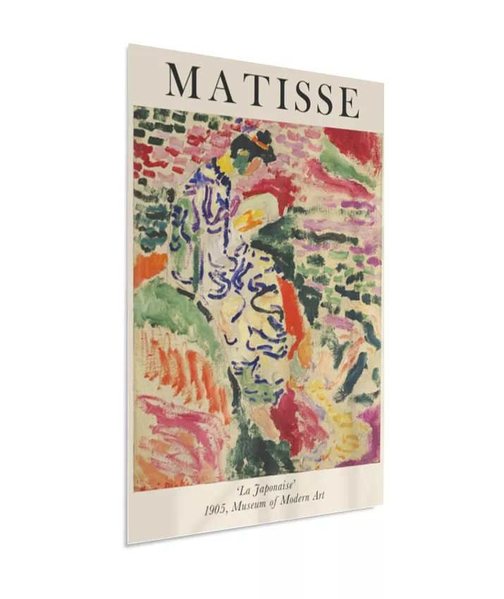 Uma mulher vestida com um quimono, refletindo a fascinação de Matisse pela arte e cultura japonesa. A peça é caracterizada por pinceladas energéticas e uso expressivo de cores.