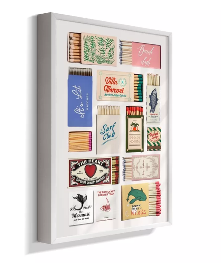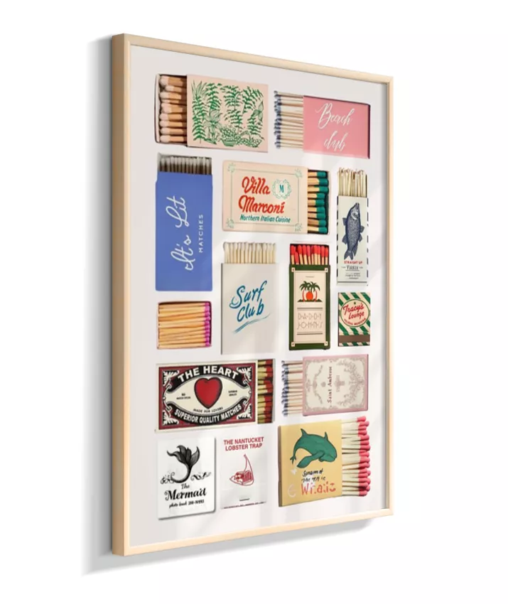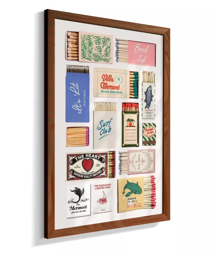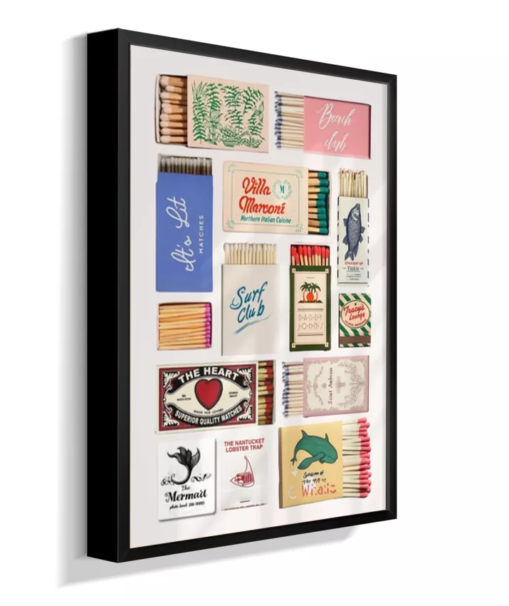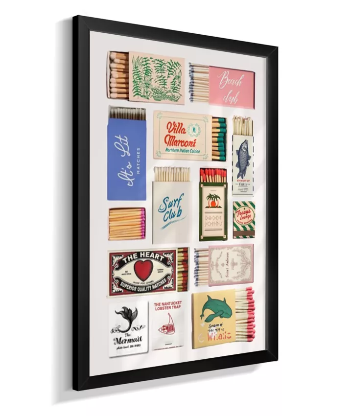 Matchbox é um quadro vibrante e divertido que mistura caixinhas de fósforo vintage, ingressos (tickets) retrô e elementos pop, com frases ousadas e cores vivas. Uma arte nostálgica com toque moderno, perfeita para ambientes criativos e cheios de personalidade.