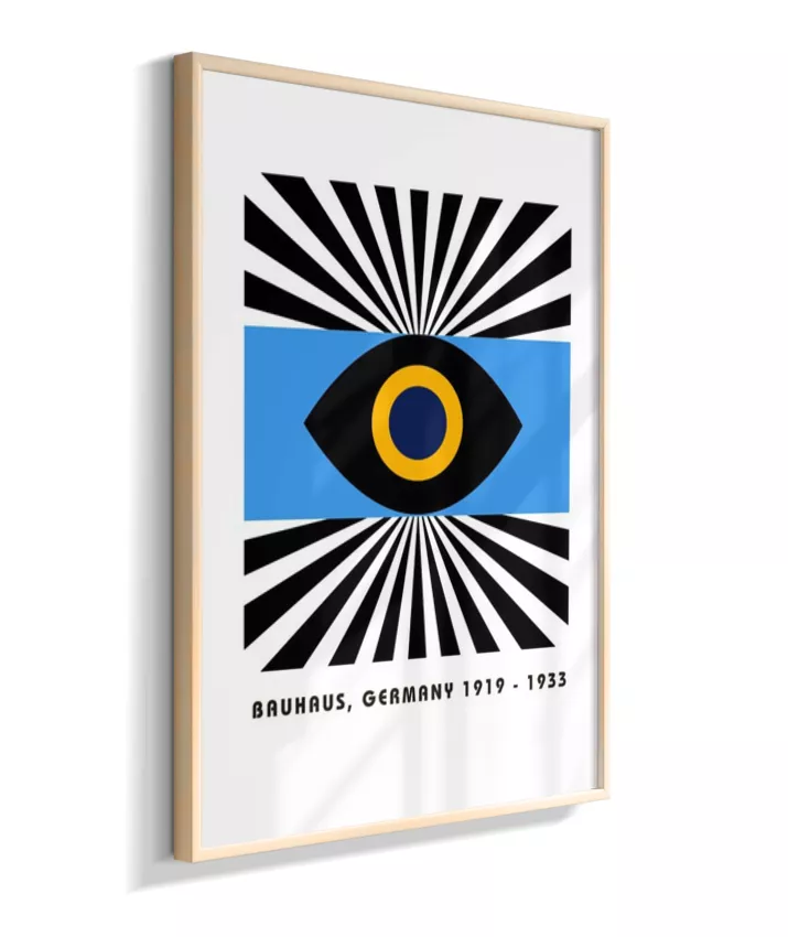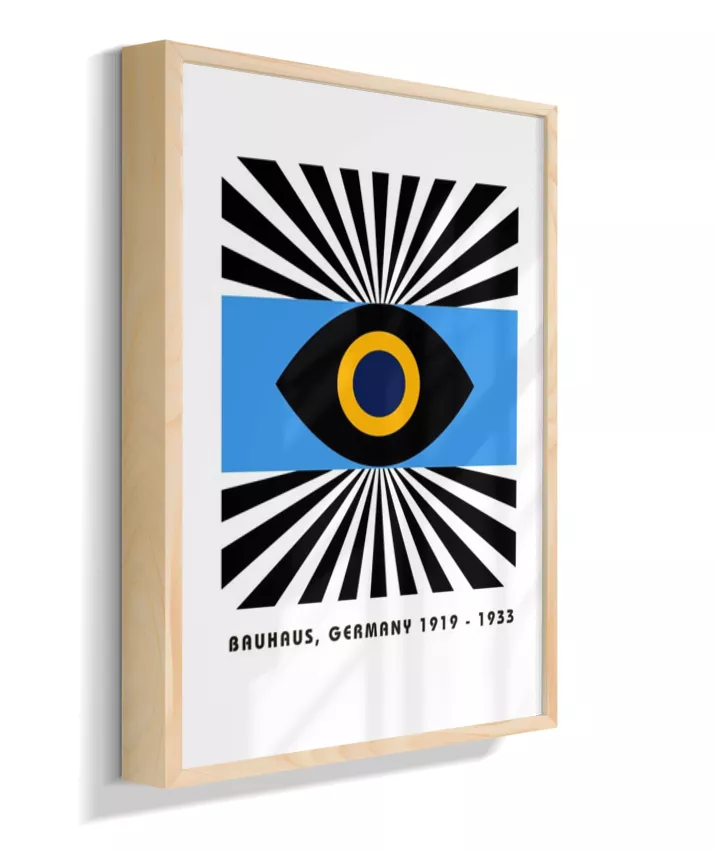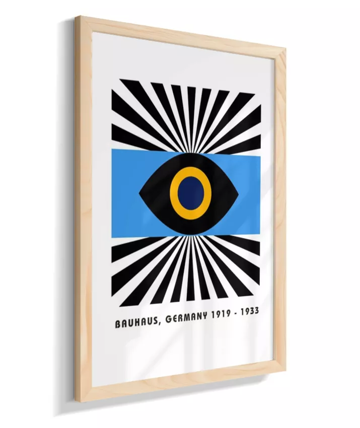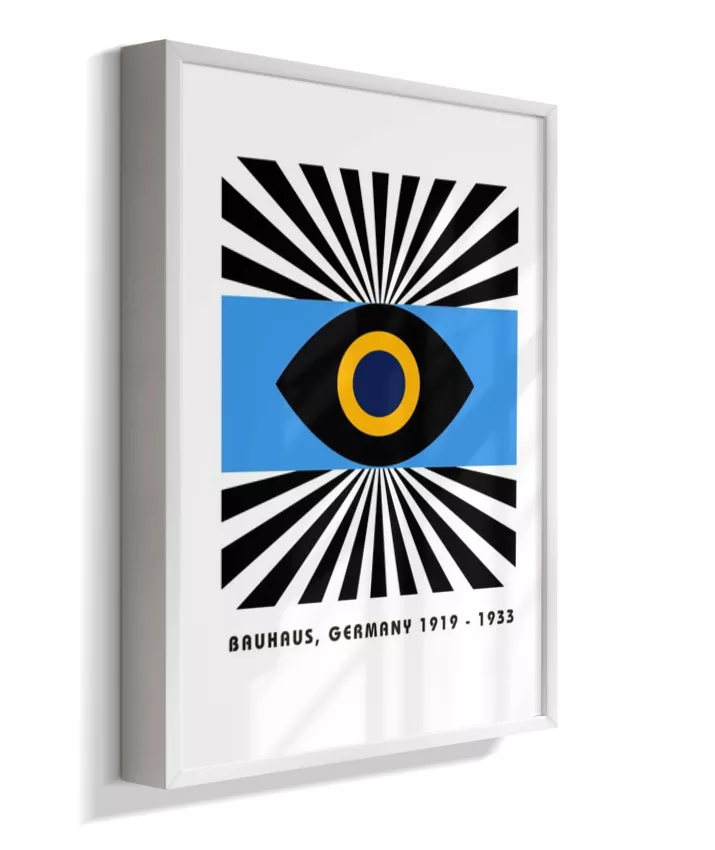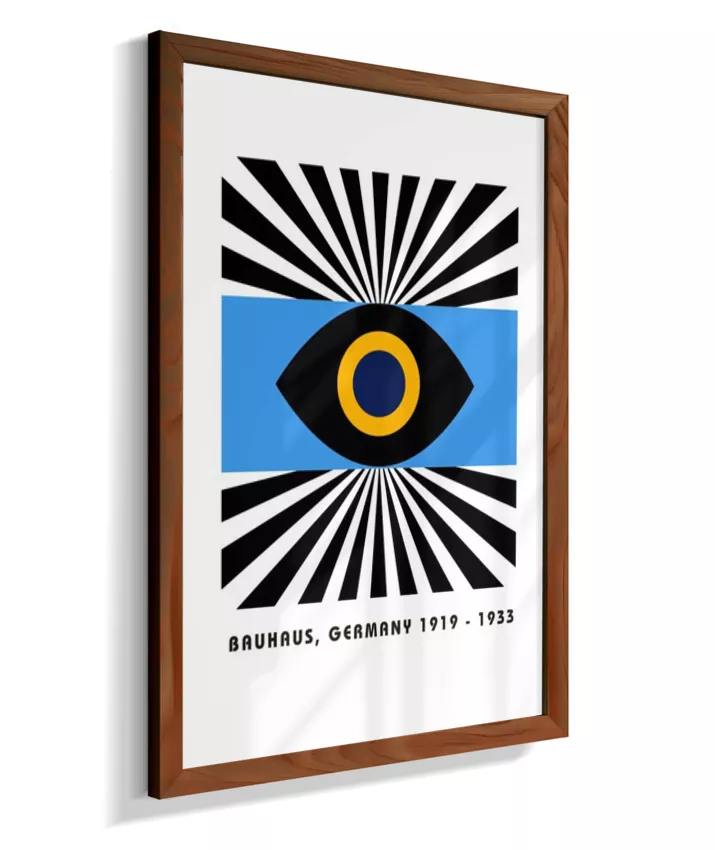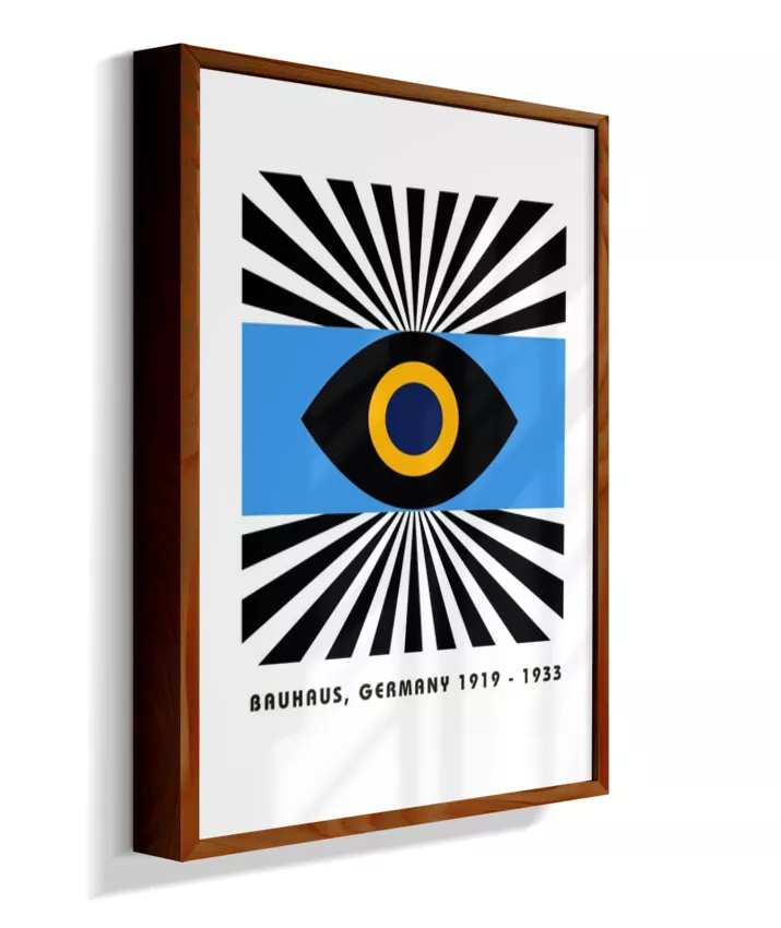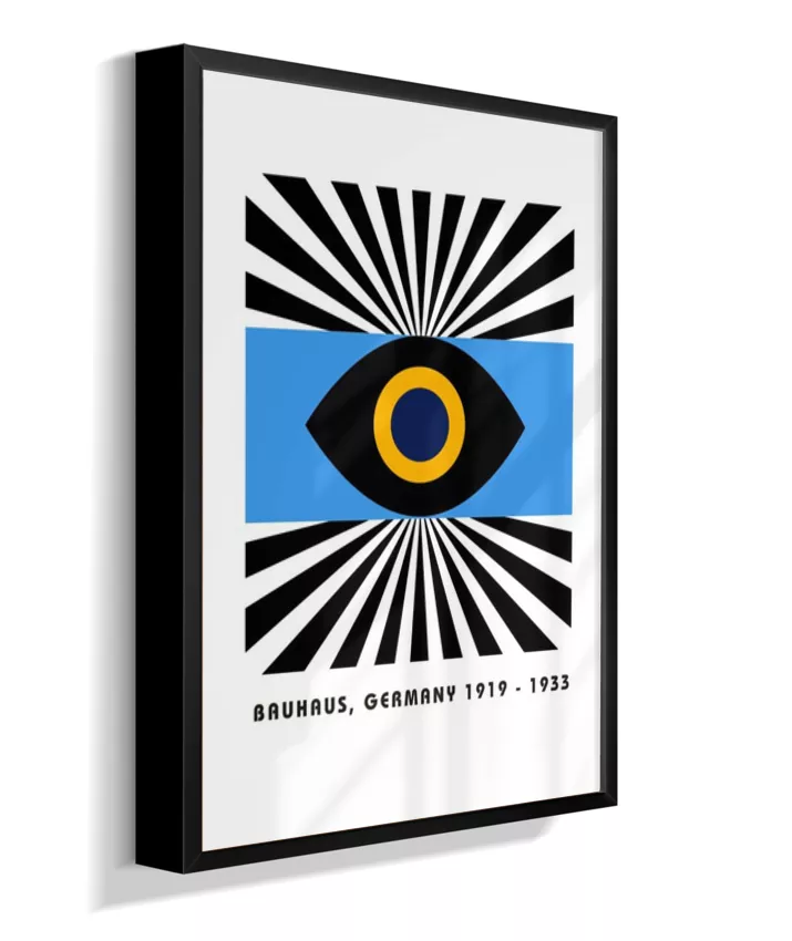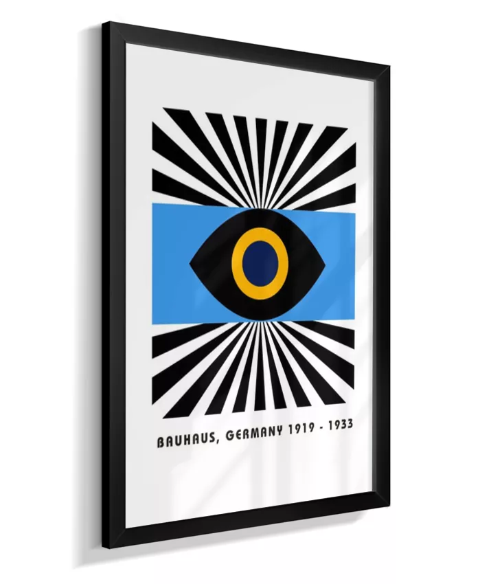 Design minimalista e moderno inspirado no movimento Bauhaus, com formas geométricas marcantes, linhas precisas e cores primárias. Ideal para ambientes contemporâneos, esse quadro une arte e funcionalidade, trazendo equilíbrio visual e sofisticação com um toque retrô. Uma escolha perfeita para quem busca elegância atemporal com identidade criativa.