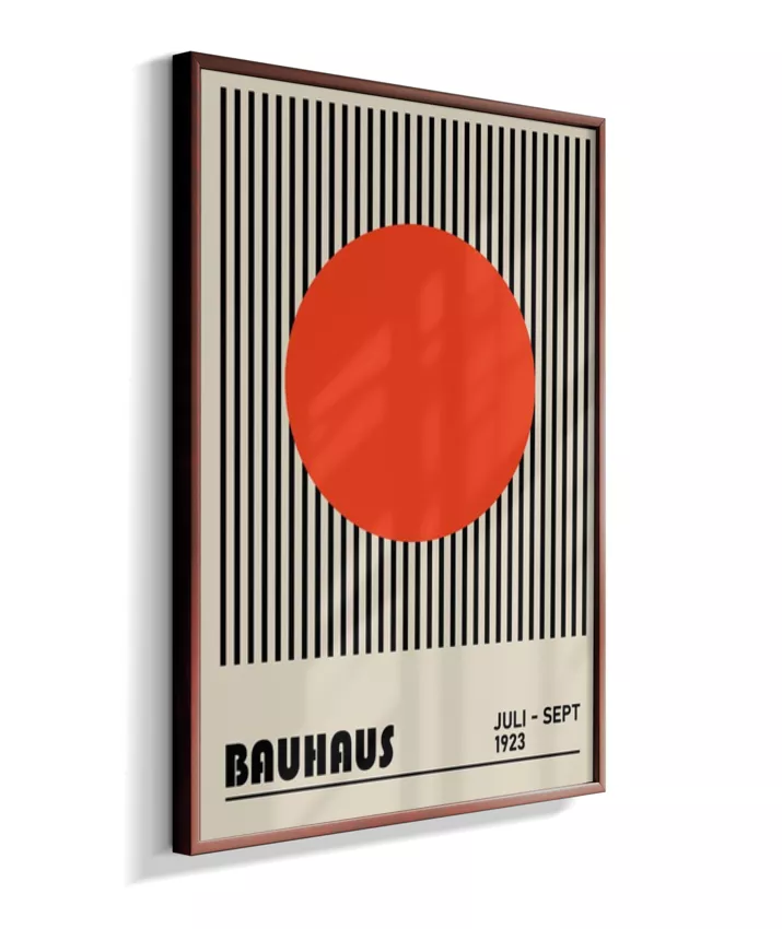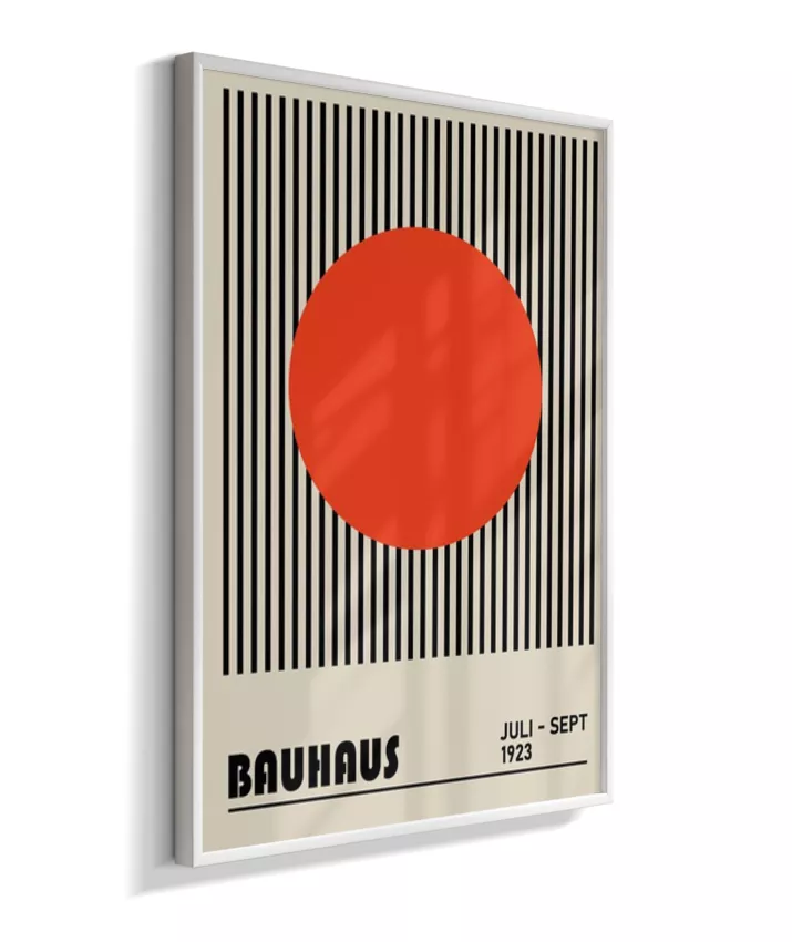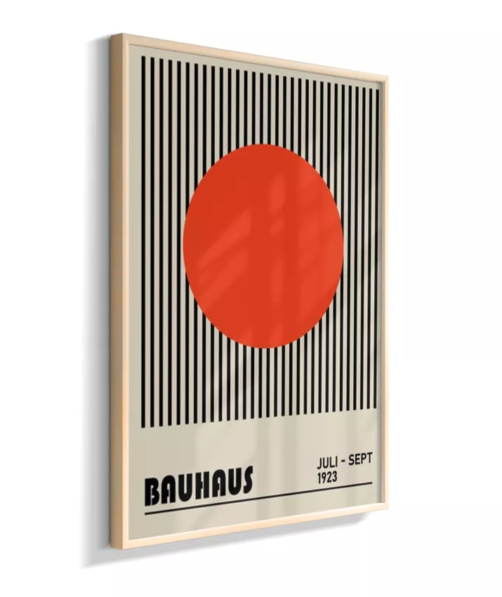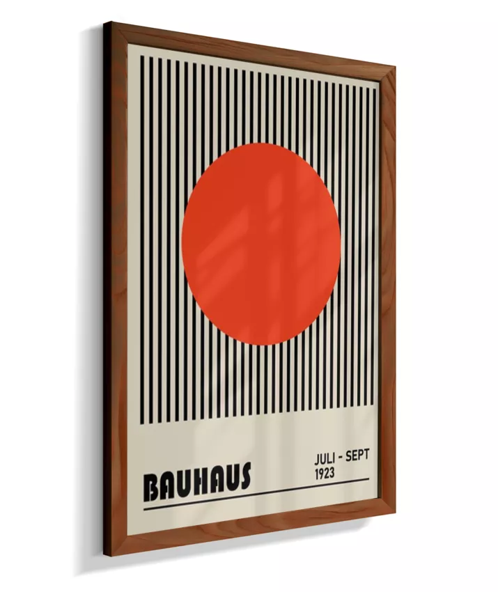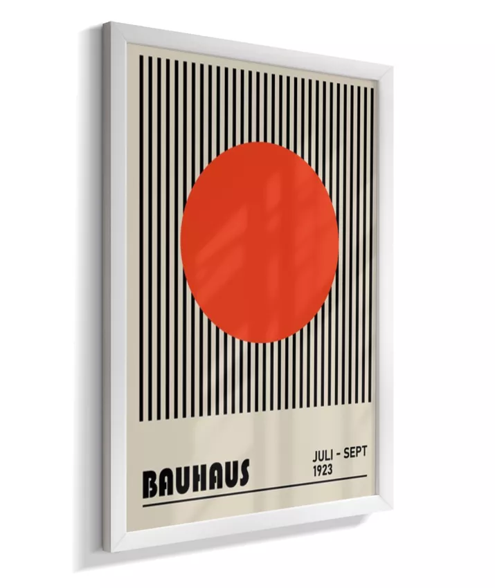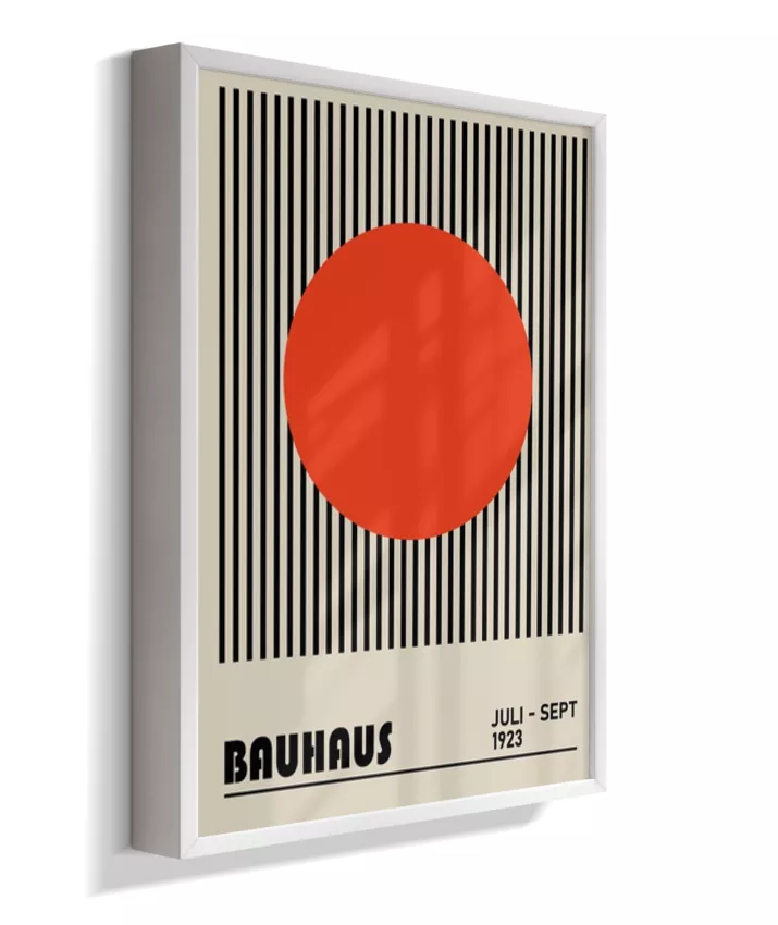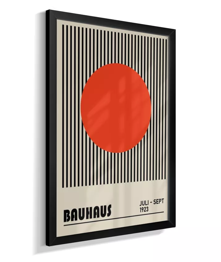 Design minimalista e moderno inspirado no movimento Bauhaus, com formas geométricas marcantes, linhas precisas e cores primárias. Ideal para ambientes contemporâneos, esse quadro une arte e funcionalidade, trazendo equilíbrio visual e sofisticação com um toque retrô. Uma escolha perfeita para quem busca elegância atemporal com identidade criativa.