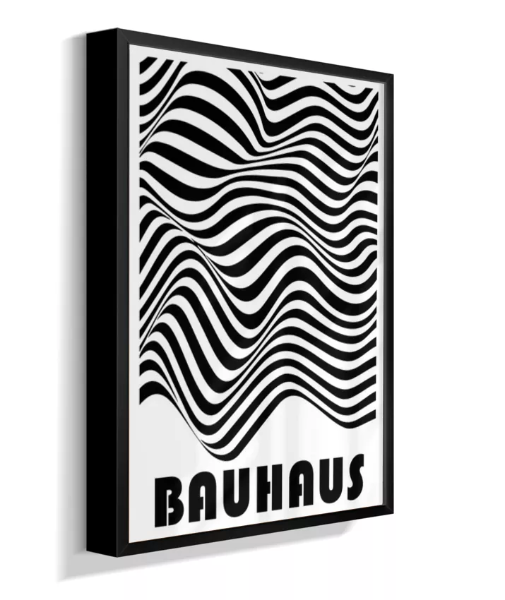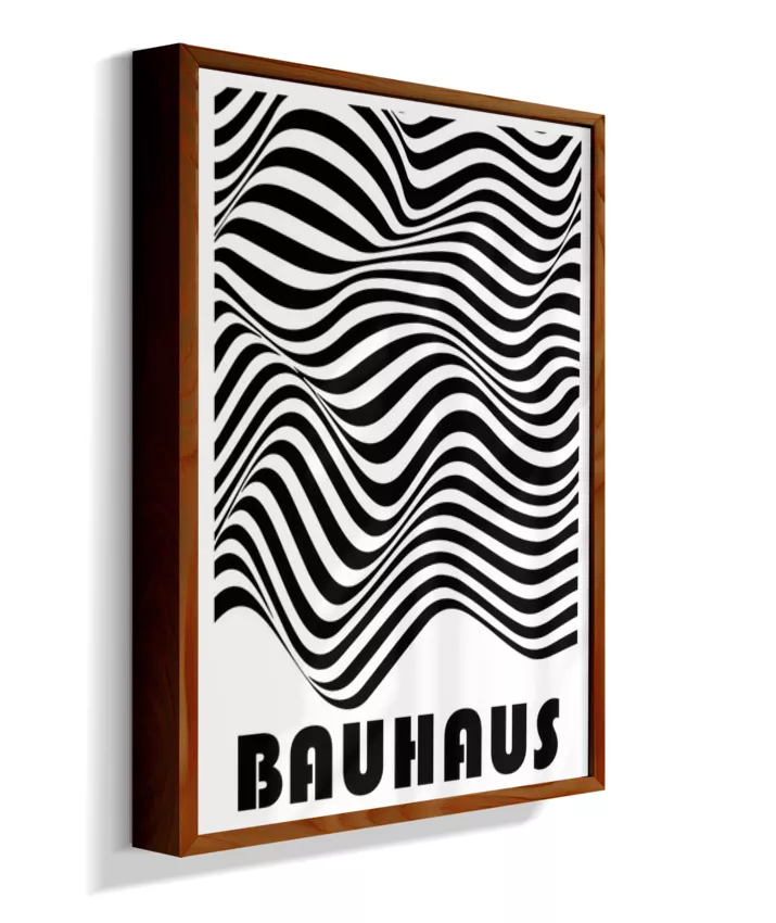 Design minimalista e moderno inspirado no movimento Bauhaus, com formas geométricas marcantes, linhas precisas e cores primárias. Ideal para ambientes contemporâneos, esse quadro une arte e funcionalidade, trazendo equilíbrio visual e sofisticação com um toque retrô. Uma escolha perfeita para quem busca elegância atemporal com identidade criativa.
